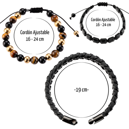 Set Pulseras | Cuero-Onix-Ojo de Tigre