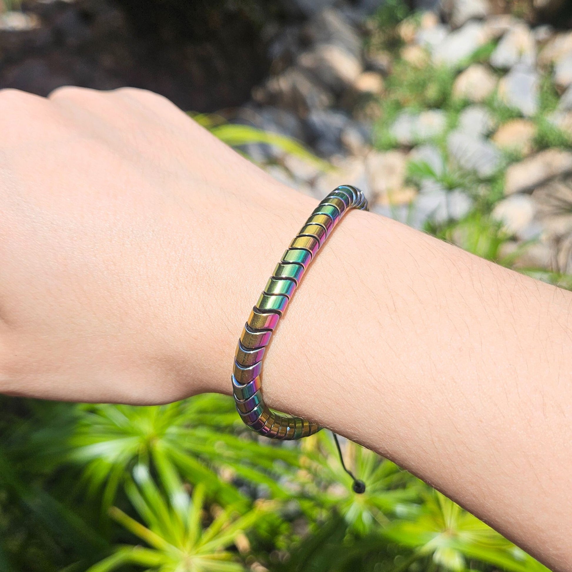 Pulsera de hematita multicolor (6 mm): protección contra energías negativas, armonía y equilibrio entre mente y cuerpo.